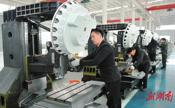 12月15日,洞口经开区台铁智能科技有限公司,工人在加紧生产钻攻机。年底临近,园区各企业加大生产力度,赶制订单产品,冲刺全年“收官战”。