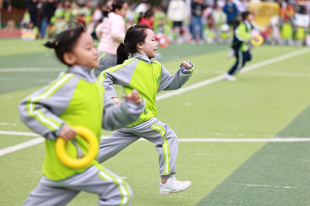 在趣味竞技中锤炼运动能力。“加油!把接力棒稳稳传过来!”三天赛事里,没有“淘汰制”,每个学生至少能参与2个项目,不同年级的赛事设计精准匹配年龄特点,让“运动能力”在快乐比拼中自然提升。