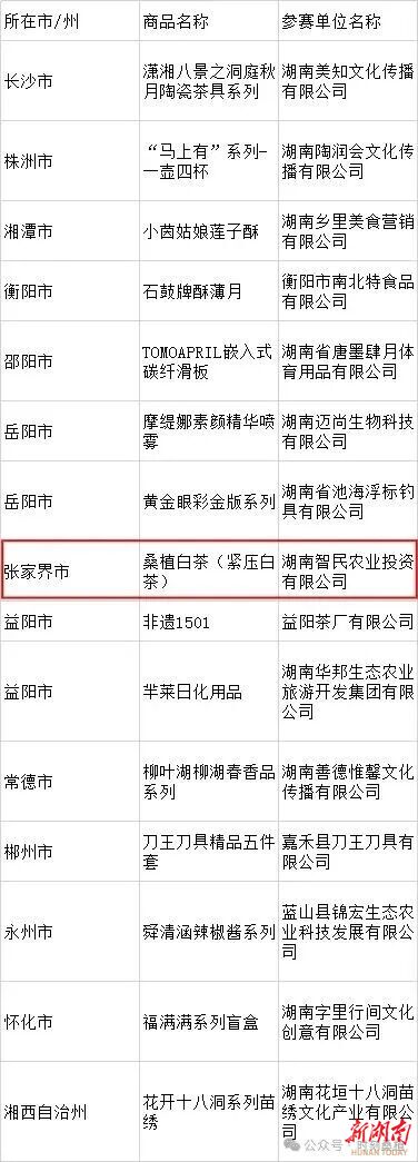12月11日,由湖南省文化和旅游厅主办、各市(州)文化旅游广体局协办、湖南省旅游商品协会承办的2025湖南省文化旅游商品大赛,在湖南国际会展中心(芒果馆)张榜公布结果,湖南智民农业投资有限公司的桑植白茶(紧压白茶)获金奖。