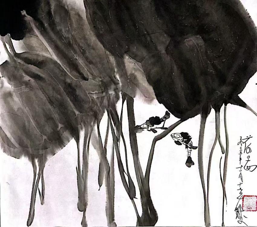 齐白石爱荷、画荷,学八大山人朱耷、青藤老人徐渭、苦瓜和尚石涛,后来“衰年变法”,创“红花墨叶”画风。