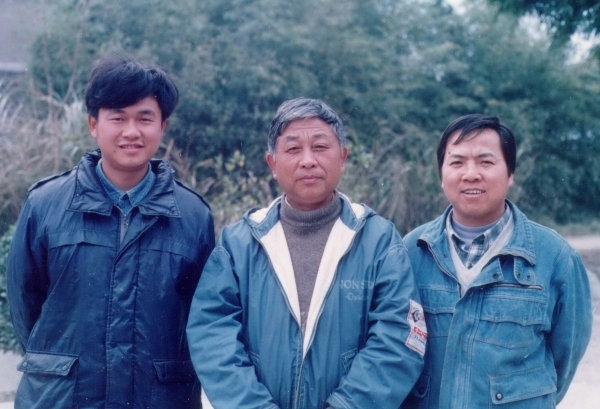 何介钧(中)与参与城头山考古发掘的曹毅(左)等人合影。曹毅是曹传松的儿子。张双北 摄