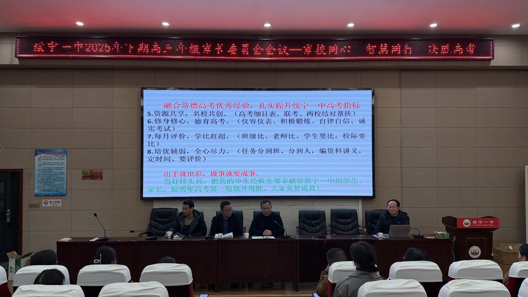 湖南日报·新湖南客户端12月16日讯(通讯员 龙双春 袁慧雅)为凝聚家校育人合力,共同助力高三学子科学备考,12月13日上午绥宁县第一中学日前组织召开了2026届高三年级家长会。本次活动以“家校同心,智慧同行,决战高考”为主题,旨在加强家校沟通,形成教育合力。
