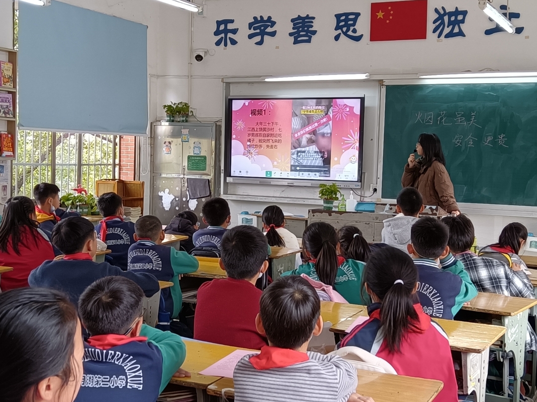 溁湾路小学党支部书记、校长祝心亮对烟花爆竹燃放安全作了宣讲,学校安全主任陈叶南宣读了《禁放烟花爆竹倡议书》,德育处主任尹子悦就“小手牵大手 禁放烟花爆竹”活动方案进行了解读,全体师生参与,氛围浓烈。