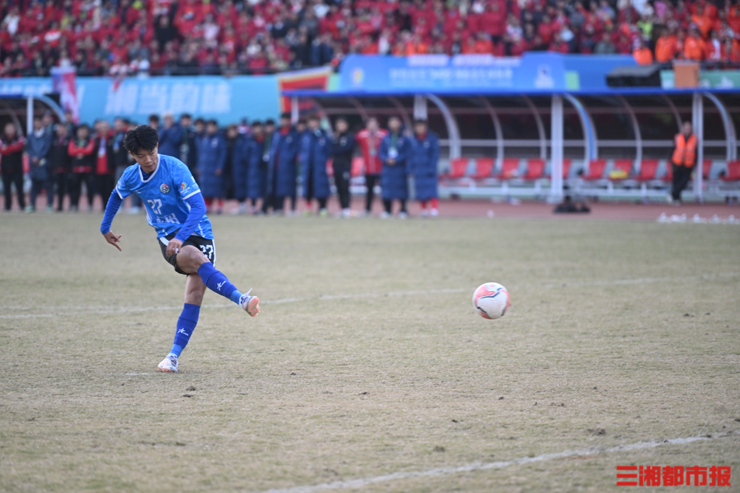 点球大战,张涛第五个出场,打入制胜点球。(郭立亮 摄)