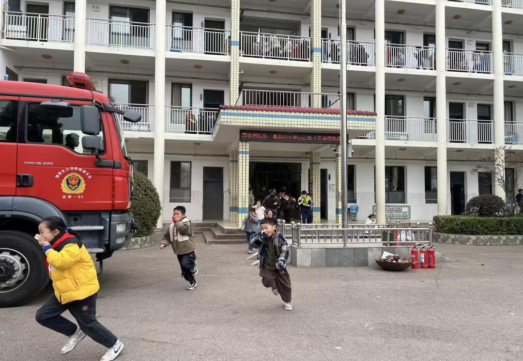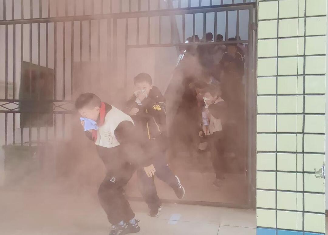 演练开始,一阵急促的消防警报响起,全校师生迅速响应:用湿毛巾捂住口鼻、弯腰低姿,沿着指定疏散路线快速撤离至操场安全区域,整个过程紧张有序,仅用时3分20秒,达到了“快速、安全、有序”的演练目标。