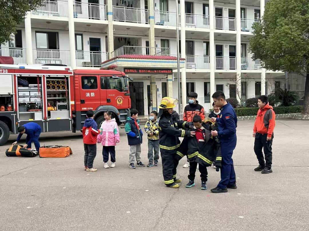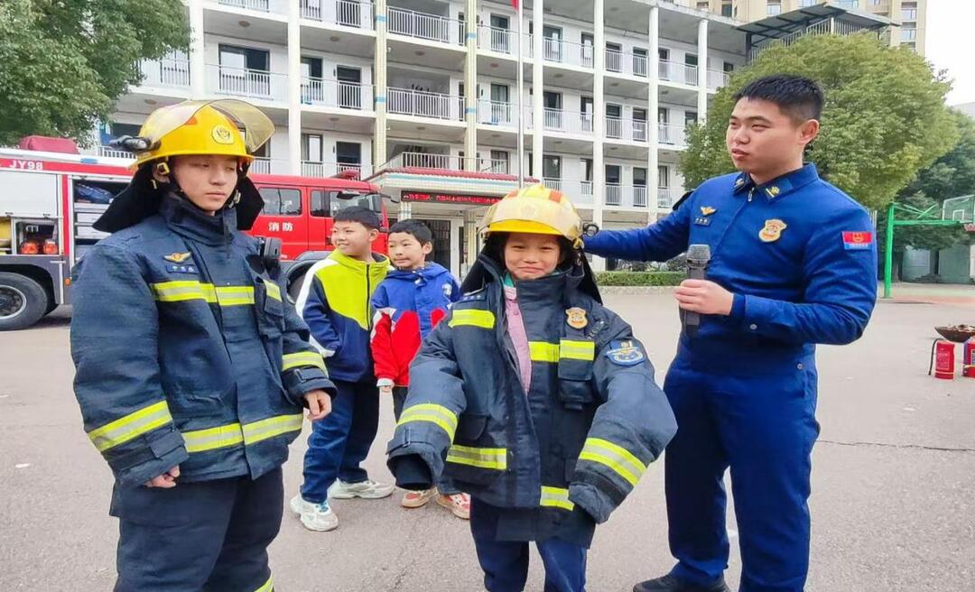 活动现场,消防员向同学们展示了消防头盔、灭火防护服、空气呼吸器等专业装备,并邀请学生代表试穿消防服、佩戴头盔,让大家直观感受到消防装备的厚重与消防员出警的不易。