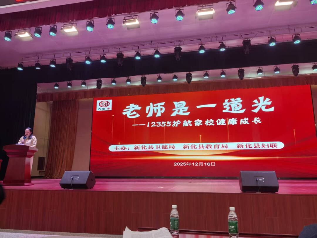 新湖南客户端讯(通讯员 刘承才)2025年12月16日,由新化县妇联、新化县卫健局、新化县教育局联合主办“12355护航家校健康成长公益讲座”在新化县北塔学校举行。本次活动聚焦教师心理健康与家校共育,吸引了全县教育系统心理健康教育教师、班主任及部分学生家长共600余人参与,共同探寻教育幸福密码,为青少年健康成长筑牢根基。