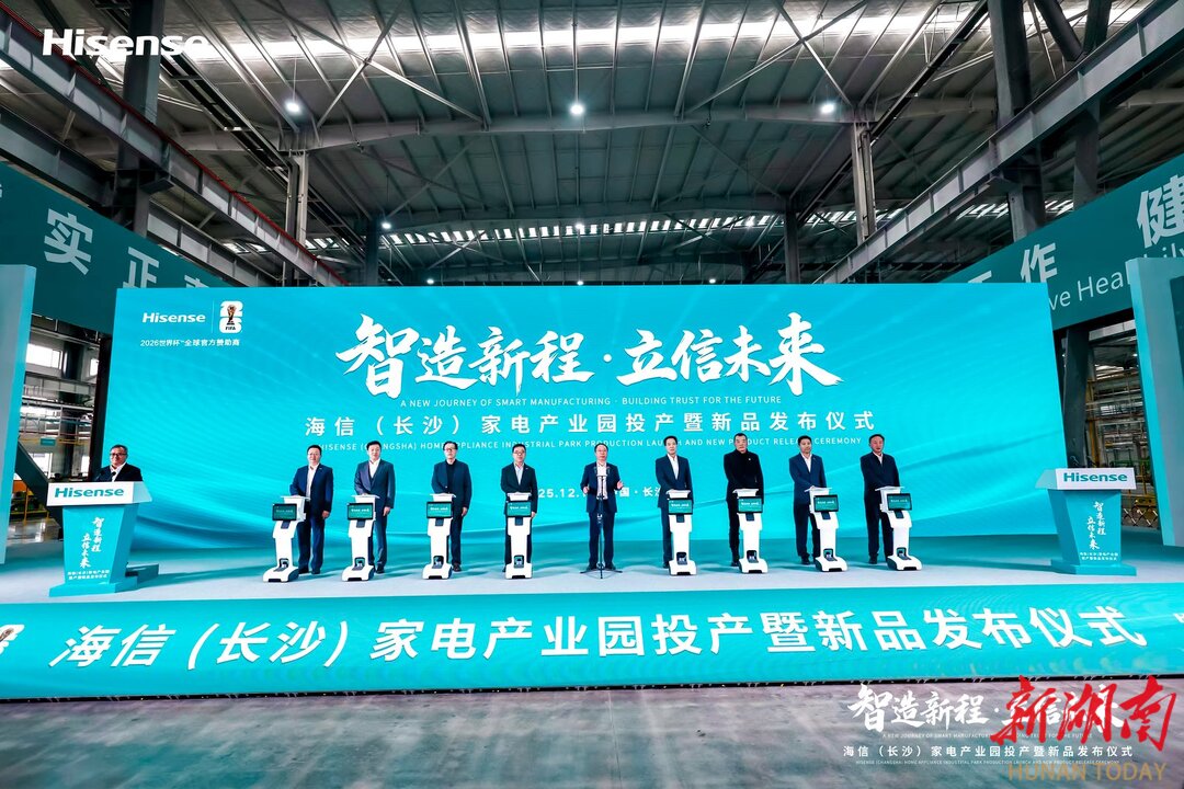 湖南日报·新湖南客户端12月16日讯(记者 李曼斯)今日,总投资100亿元的海信(长沙)家电产业园在宁乡经开区正式投产。作为海信集团布局华中的战略基地,此次投产的一期项目投资50亿元,主要生产商用中央空调,设计年产能达200万台,预计年产值将实现30亿至40亿元,为长沙智能家电产业集群注入强劲动力。