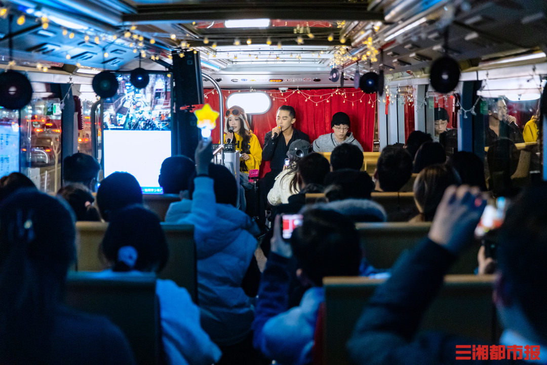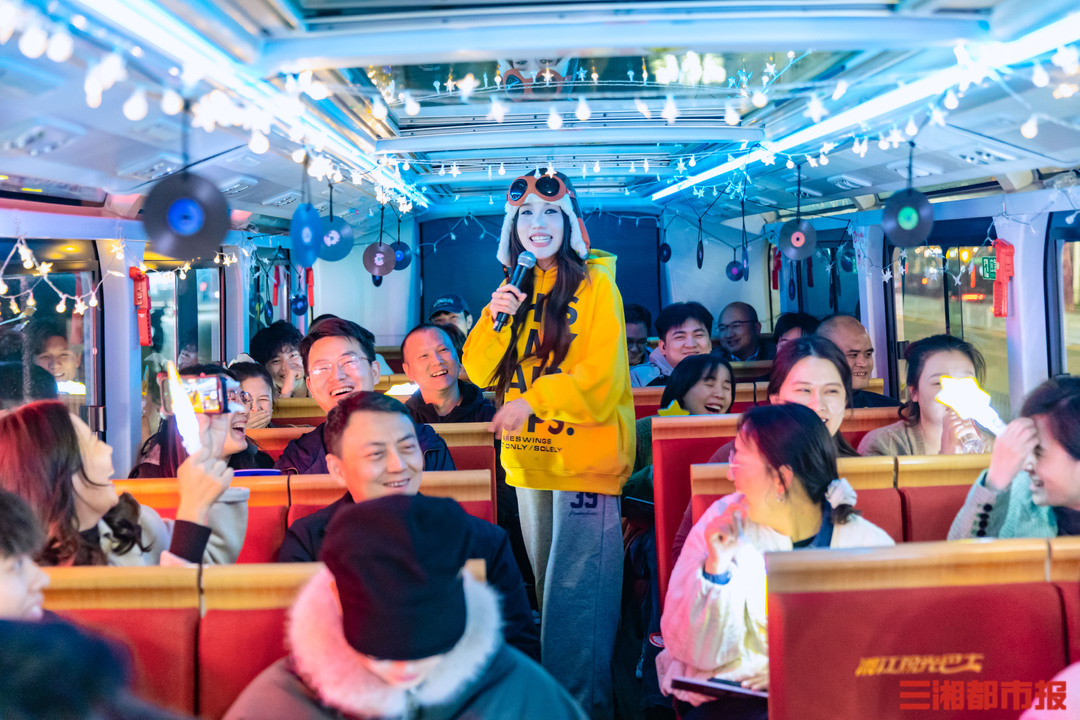 除了移动演艺,“音乐巴士”还设置了猜歌名、歌曲接龙等趣味互动环节。市民、游客在欣赏沿途夜景、观看现场演出的同时,还可参与游戏赢取限量礼品。从城市地标到江景夜色,从live弹唱到趣味社交,“音乐巴士”带来的移动观光+现场音乐的跨界体验,将为湘江观光巴士这一城市文旅休闲场景赋予更多意义。
