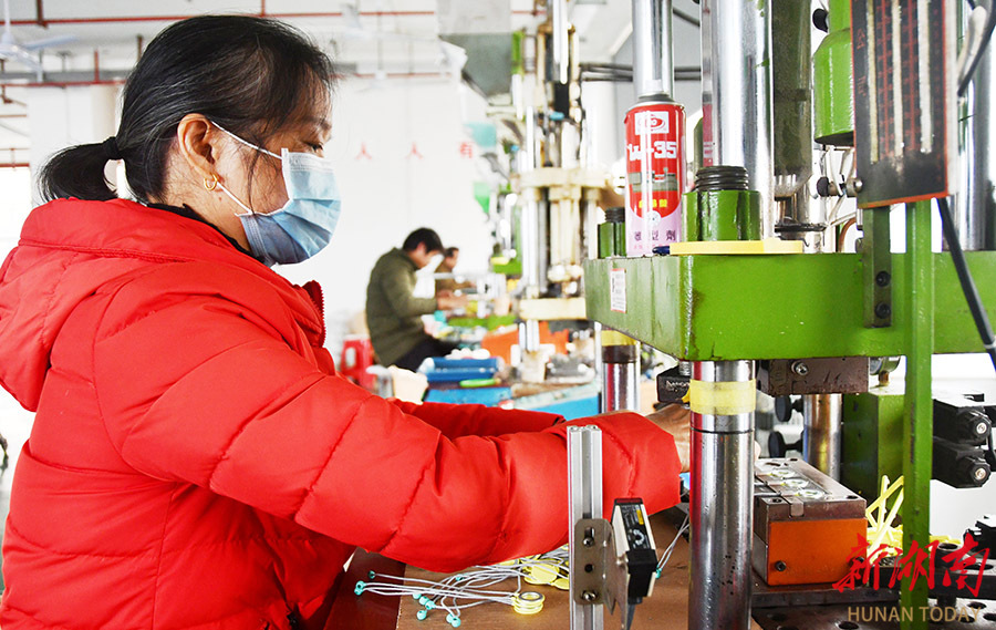 12月16日,江永产业开发区长源辉达新能源科技有限公司,工人在生产线上赶制产品订单。时值年末,该县各企业开足马力赶订单,奋力冲刺全年目标。 田如瑞 摄(湖南图片库)