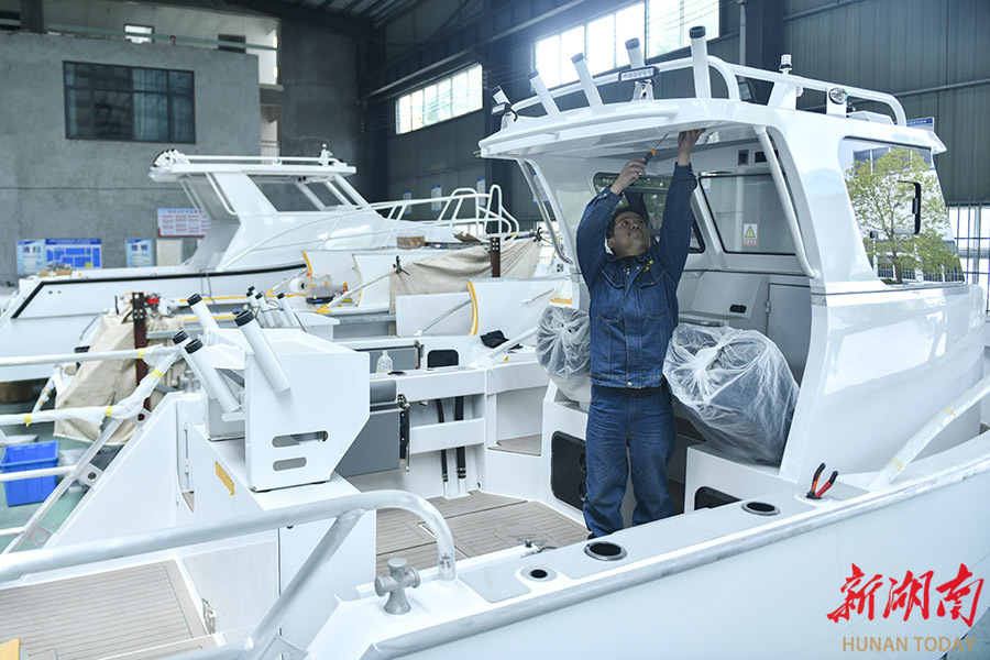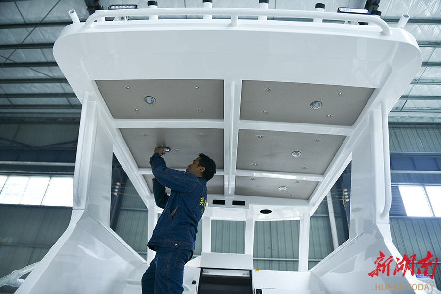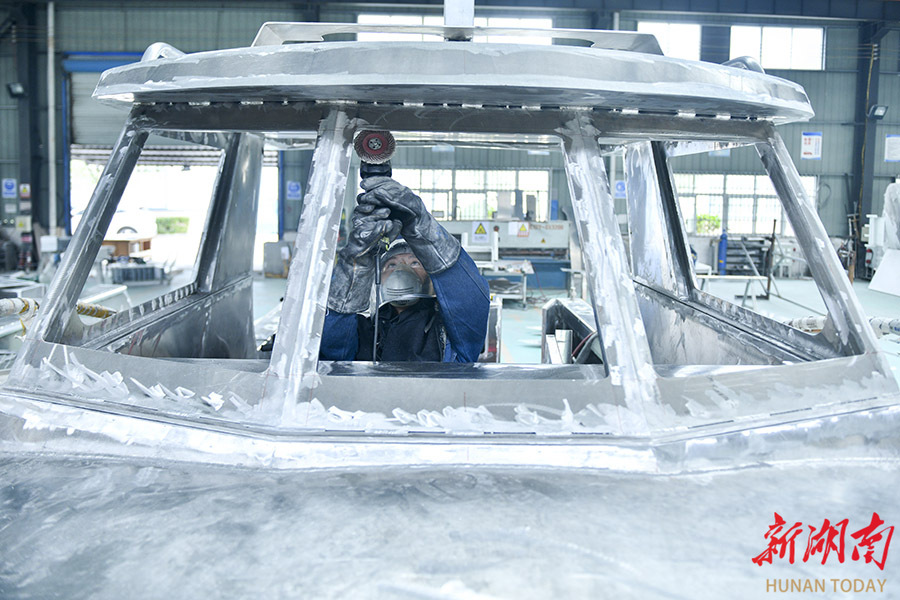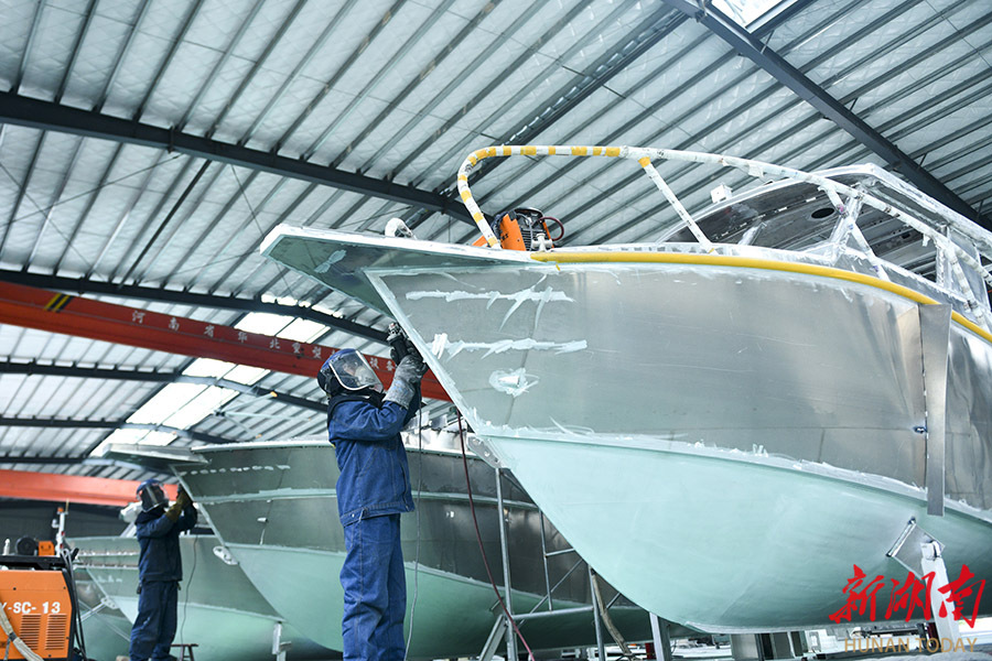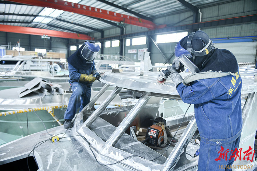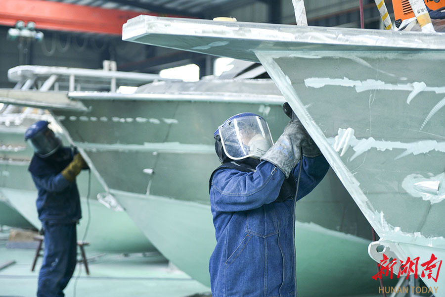 12月16日,位于娄底经开区的湖南英越船舶配套工程有限公司车间,工人在赶制船舶订单。时值年末,该公司工人加紧赶制订单,冲刺年度生产目标,其豪华游艇产品远销欧美多国,展现强劲出口实力。 吴永华 摄(湖南图片库)