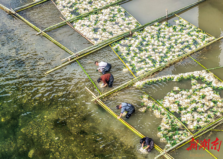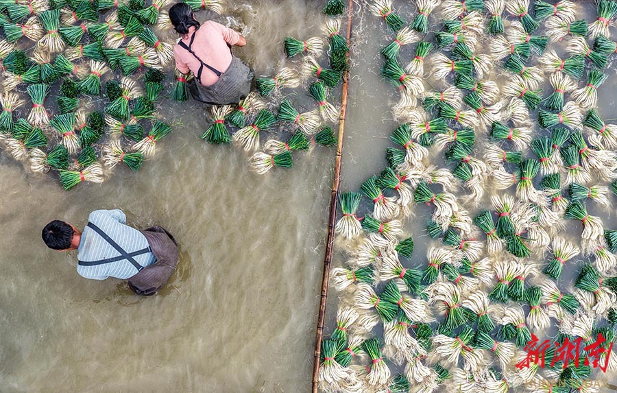 12月16日,道县营江街道车边社区,农民在清洗藠头准备外销。近年来,该县积极推广“水稻+藠头”轮作模式,推动藠头产业规模化发展,优质产品畅销粤港澳大湾区,有效促进农民增收致富。 蒋克青 摄(湖南图片库)