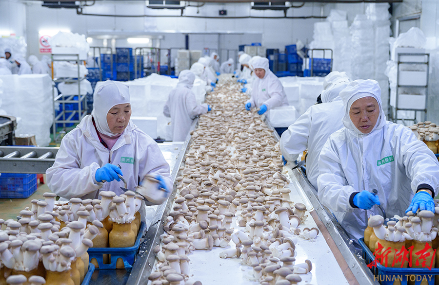 12月16日,永州市冷水滩区湖南省宇秀生物科技有限公司杏鲍菇生产基地,工人在采收杏鲍菇。该基地日产30余吨,产品远销欧美东南亚。近年来,冷水滩区立足资源禀赋优势,通过政策引导、技术创新等措施发展食用菌产业,有效带动群众增收。 雷中祥 曹慧璎 摄影报道(湖南图片库)