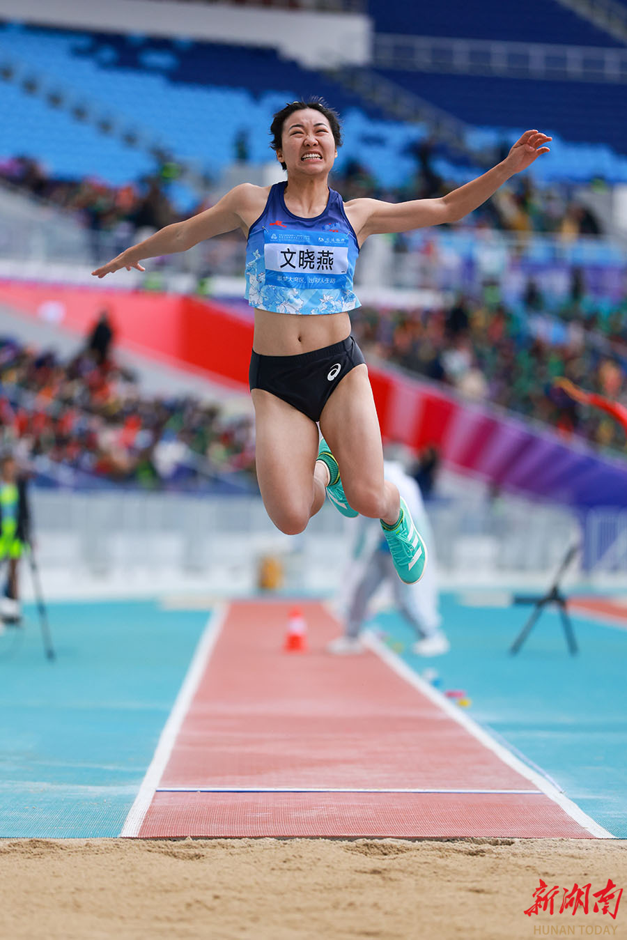 12月14日,在女子跳远T37级比赛中,文晓燕奋力一跳。最终,她获得该项目金牌。