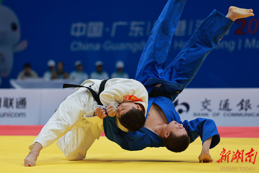 12月10日,在盲人柔道男子J1-81公斤级决赛中,29岁的周志伟(白)成功夺金。
