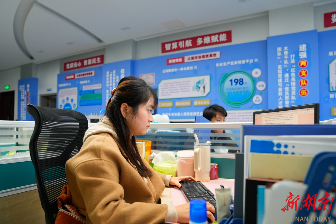 12月8日,慈利县大数据中心,工作人员统筹数据资源的共享与开放,推进“互联网+政务服务”等相关工作。