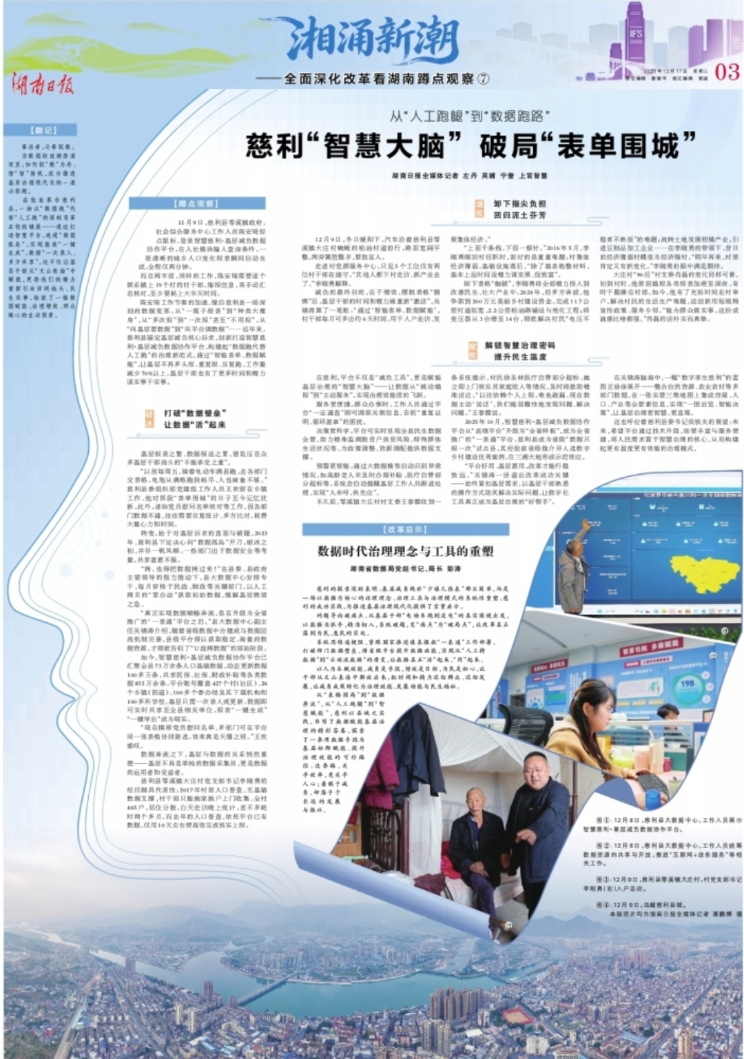 从“表格困局”到“数据奔流”,从“人工跑腿”到“智慧赋能”,慈利以县域之实践,书写了数据赋能基层治理的精彩答卷,探索了一条用数据手段为基层松绑赋能、提升治理效能的可行路径。这条路,关乎效率,更关乎人心;着眼于减负,却落子于长远的发展与振兴。