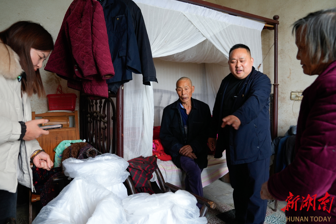 12月9日,慈利县零溪镇大庄村,村党支部书记李刚勇(右)入户走访。