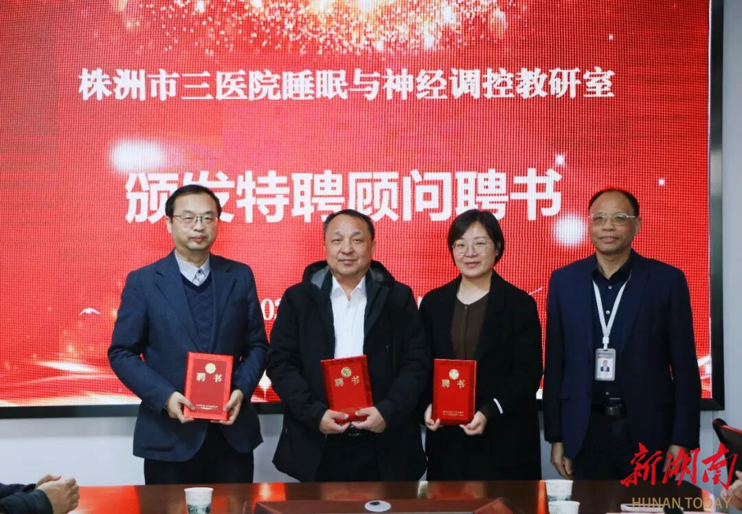 湖南日报·新湖南客户端12月17日讯(通讯员 郭彩凤)11月25日,株洲市三医院睡眠和神经调控教研室成立大会在市三医院成功举行,浙江大学医学院附属精神卫生中心邓伟教授,中南大学湘雅二医院谭立文教授、欧阳萱教授受邀出席会议,株洲市三医院党委书记陈湘清,党委副书记、院长李小斌,党委委员、副院长(教研室主任)赵烨勋,党委委员、绩效指导部主任邓明,各职能部门负责人参会。