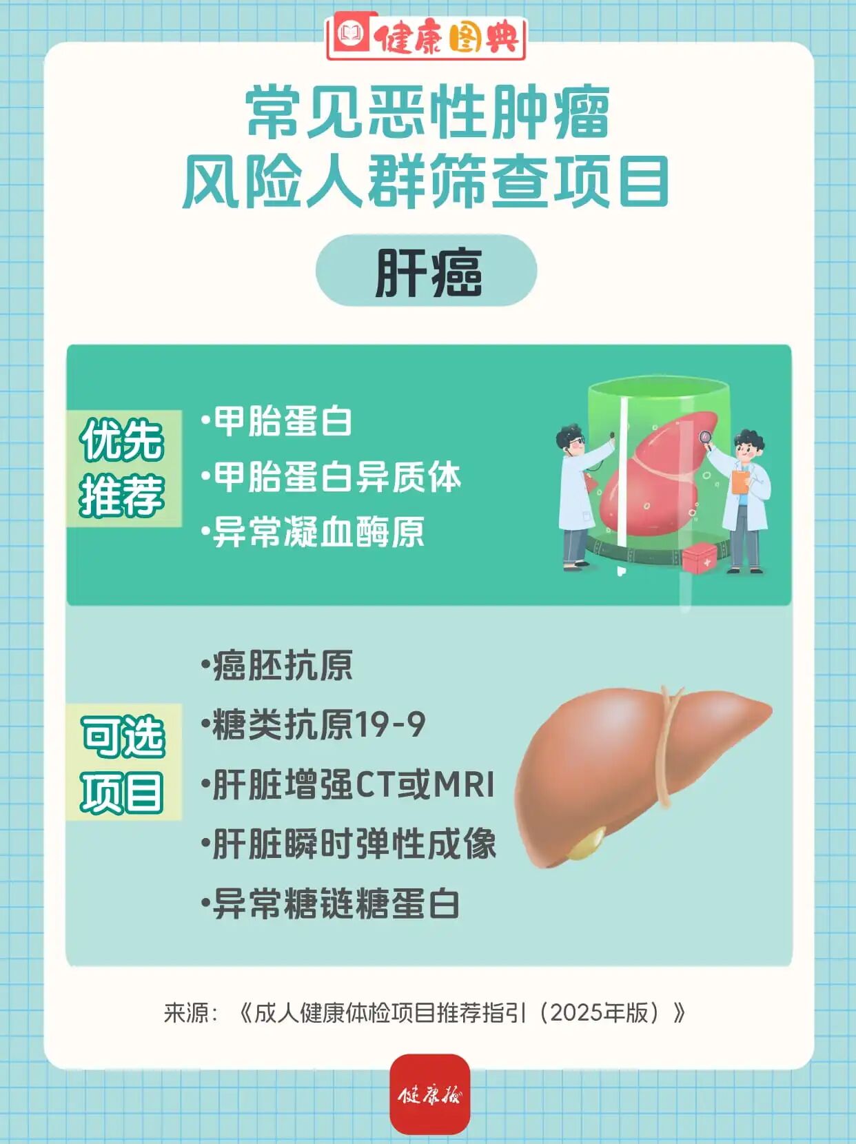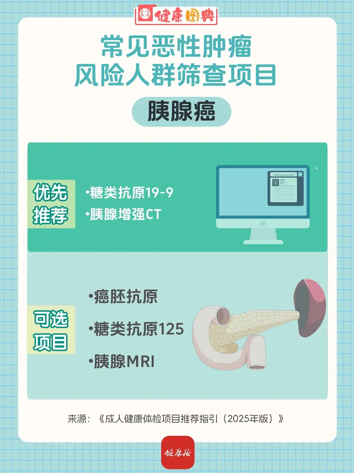 近期,国家卫生健康委办公厅印发《成人健康体检项目推荐指引(2025年版)》,进一步规范健康体检行为,维护受检者健康权益。根据新版《指引》,慢性病风险筛查项目包括心脑血管疾病风险人群筛查项目、常见恶性肿瘤风险人群筛查项目、其他慢性病风险人群筛查项目。