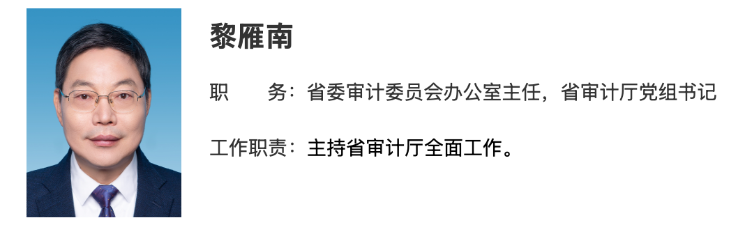 湖南日报·新湖南客户端12月17日讯(记者 周帙恒)据湖南省审计厅官方网站“机构领导”一栏显示,黎雁南任省委审计委员会办公室主任、省审计厅党组书记,主持省审计厅全面工作。