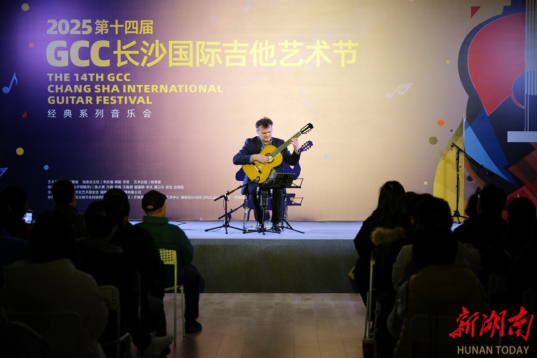 新湖南客户端12月17日讯(记者 陈大勇 艾鹏飞 通讯员 李庆湘)12月16日晚,长沙芒果美术馆L4展厅内座无虚席,琴音流淌。由湖南省文化艺术基金会、湖南日报融媒传播有限公司联合主办,长沙果核云琅文化科技有限公司承办,芒果美术馆、芒果未来艺术中心、湖南设计HIDE SPACE设计艺术馆协办的2025第十四届GCC长沙国际吉他艺术节“大师经典系列音乐会”在此上演,为数百名星城乐迷带来一场融汇东西的弦乐盛宴。