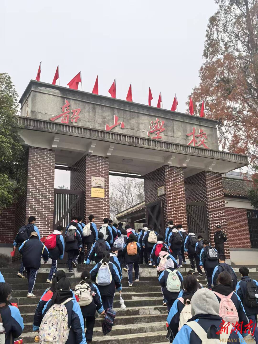 12月12日清晨,顺湖中学运动场上红旗猎猎,口号铿锵,“我的韶山行”红色研学出征仪式正式启幕。该校主要负责人寄语全体学子要以研学为契机,读懂韶山的红色密码,践行青春的使命担当。该校校长为研学队伍授旗并宣布出征。高二年级全体师生列队肃立,嘹亮的誓言响彻校园,向着韶山的方向,开启一场与红色历史的对话。