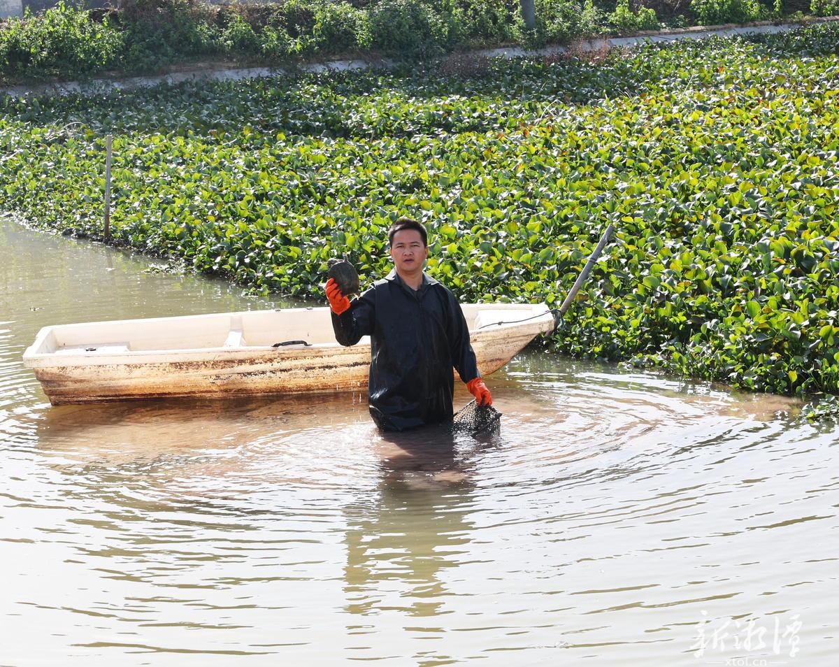 “南苹甲鱼”喂养的是小鱼小虾,半池水葫芦成了天然净水器。 (李新辉 摄)