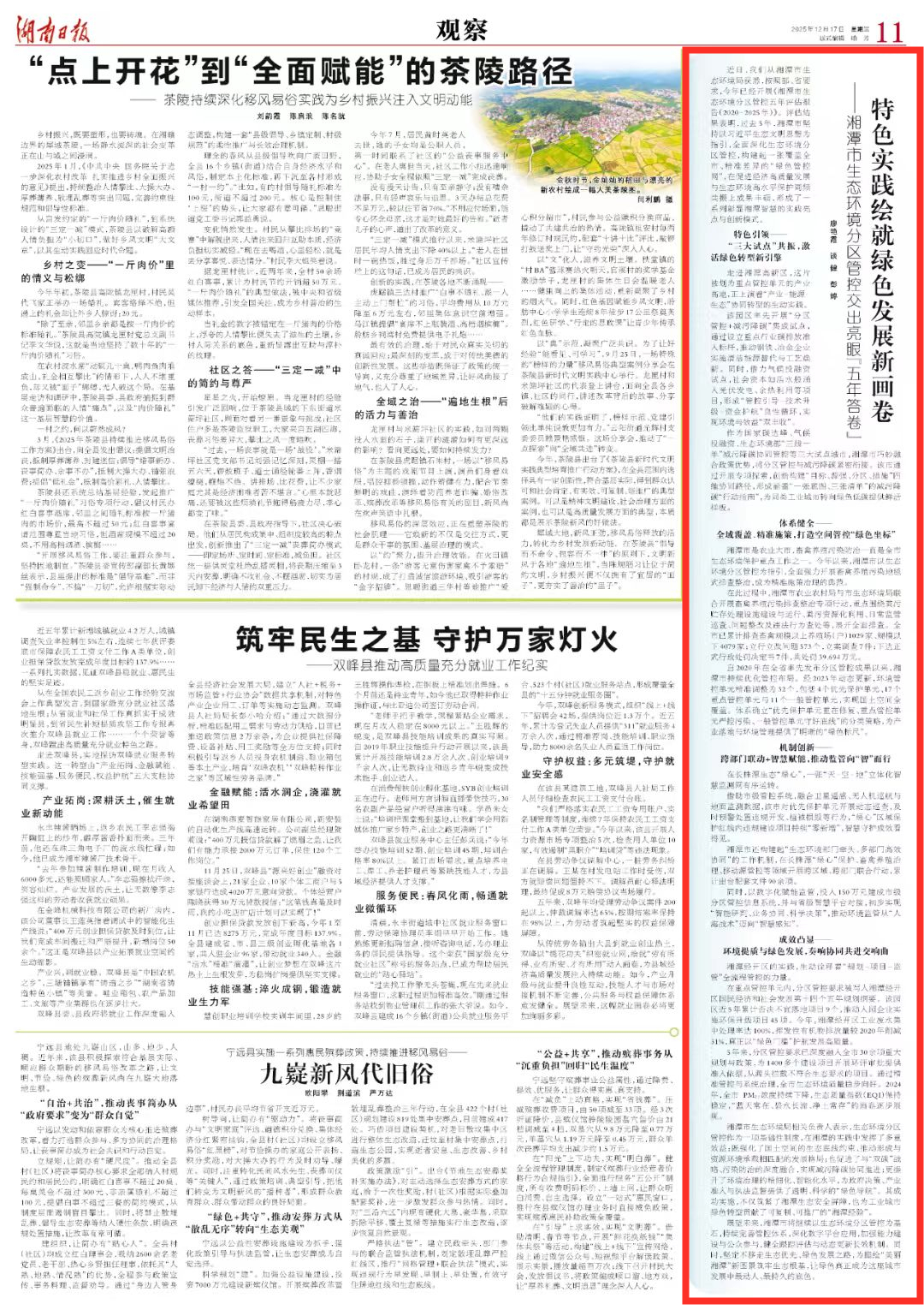 湘潭市还构建起“生态环境部门牵头、多部门高效协同”的工作机制,在长株潭“绿心”保护、畜禽养殖治理、移动源管控等领域开展跨区域、跨部门联合行动,累计出台配套文件90余项。