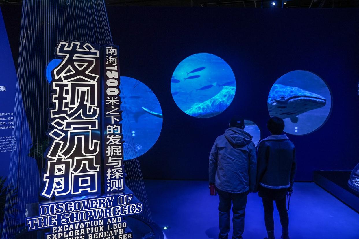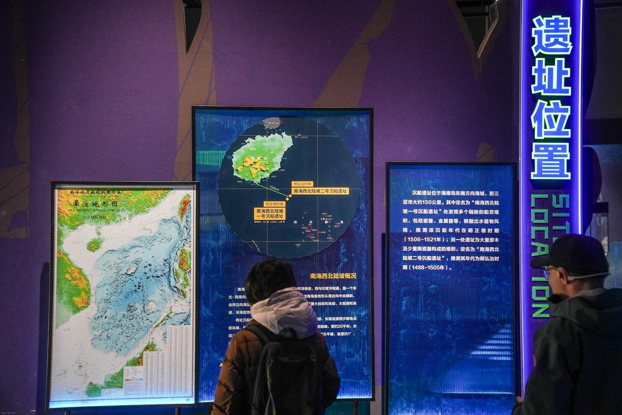参观者通过展板了解遗址位置。深海考古的新科技同步亮相展厅。“重点展示了深海考古的深海环境、先进技术和装备,比如‘深海勇士’号载人潜水器模型等,让观众更直观地了解深海考古的复杂性和挑战性。”郑睿瑜说,这些彰显了我国深海科技最前沿的工程智慧,展现了深海科技与水下考古跨界融合、相互促进的美好前景。