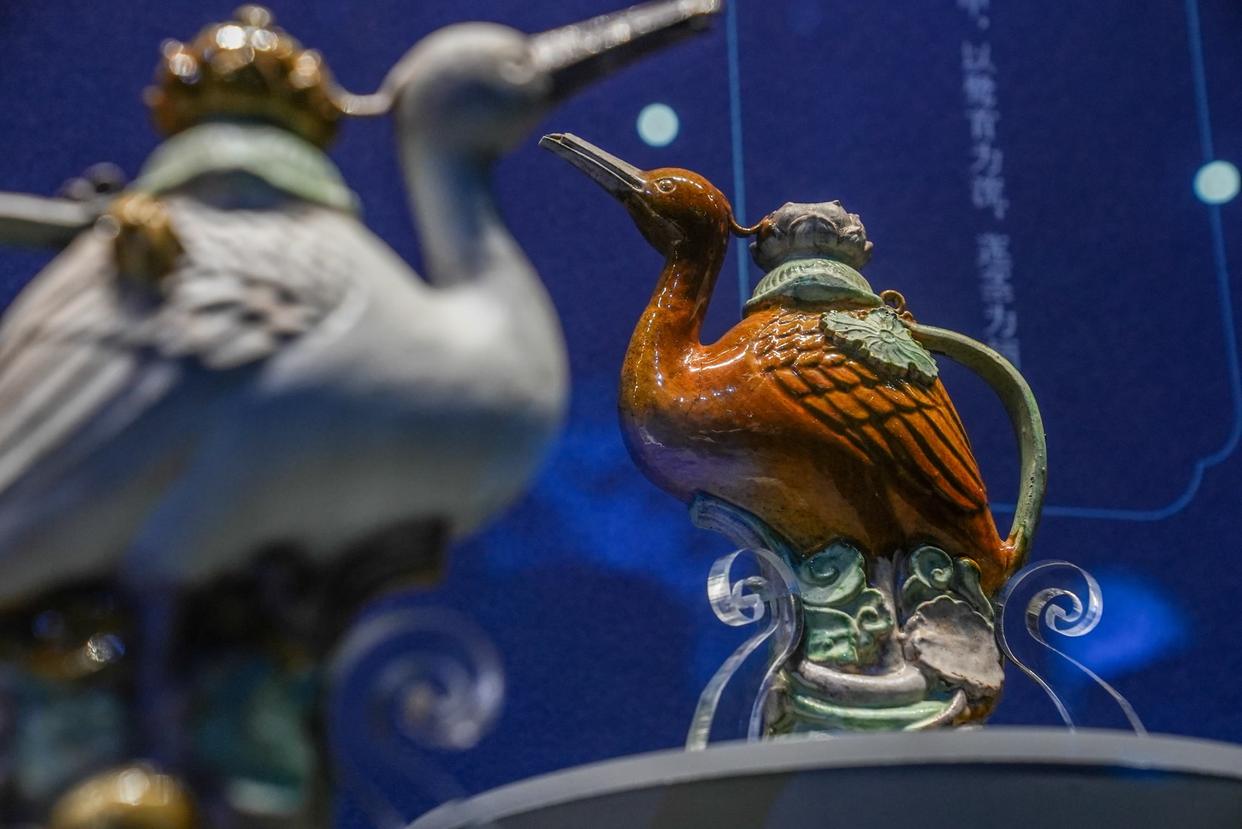 两艘明代宝船载着绚丽珍宝“驶”入大运河畔。12月16日,“向海而行——中国南海西北陆坡海域深海考古特展”在北京大运河博物馆开幕,377组件曾沉睡在1500米深海的出水文物揭开面纱,再现明代中期海上丝绸之路的繁盛图景。