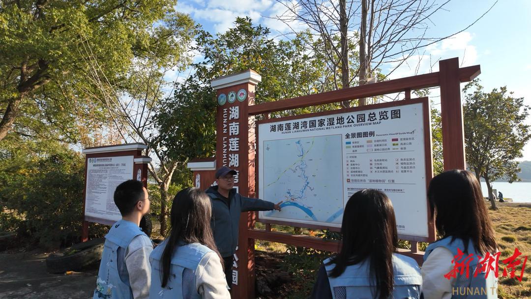宣讲团全体成员还前往莲湖湾国家湿地公园开展实地调研。成员们深入了解该湿地作为湘江上游河湾,实现自然风貌与水利工程和谐共生的生态价值,并参与岸线垃圾清理实践。
