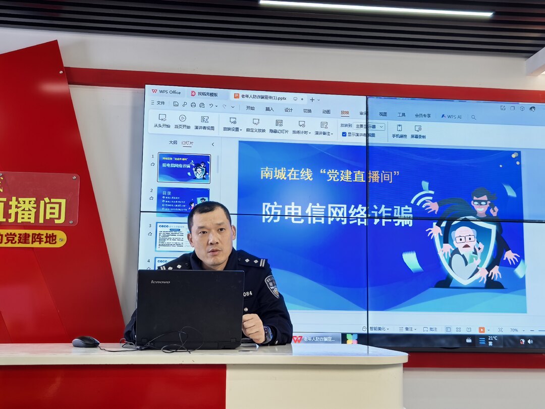 先锋派出所民警正在通过南城在线党建直播间讲述真实案例。