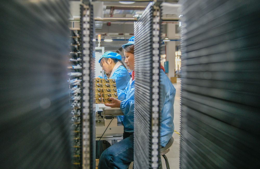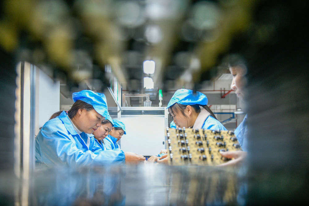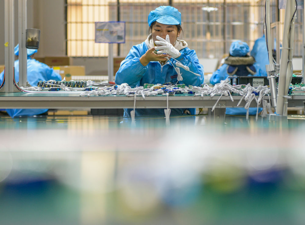 以上图片:2025年12月17日,在湖南省永州市道县高新技术产业开发区,工人在适配器生产流水线上工作。CICPHOTO/蒋克青 摄