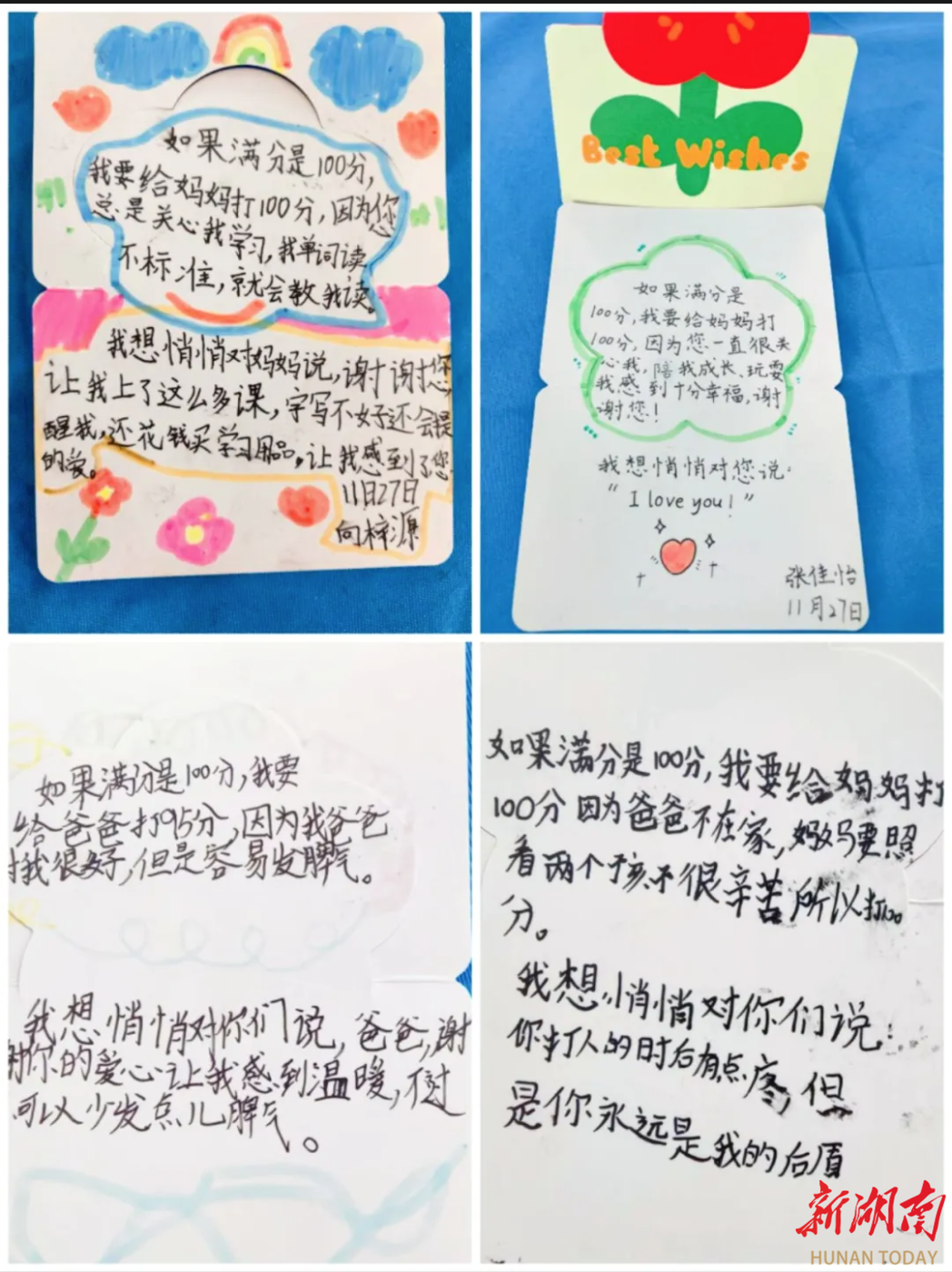 周南望城学校小学部的娃主打一个“朴实无华但戳心”!家长们拆开信,满屏都是直球表白:“妈妈,您辛苦了,我永远爱您!”“爸爸,希望您少看手机,多陪陪我踢球!”“谢谢你们教我认字,带我看世界。”