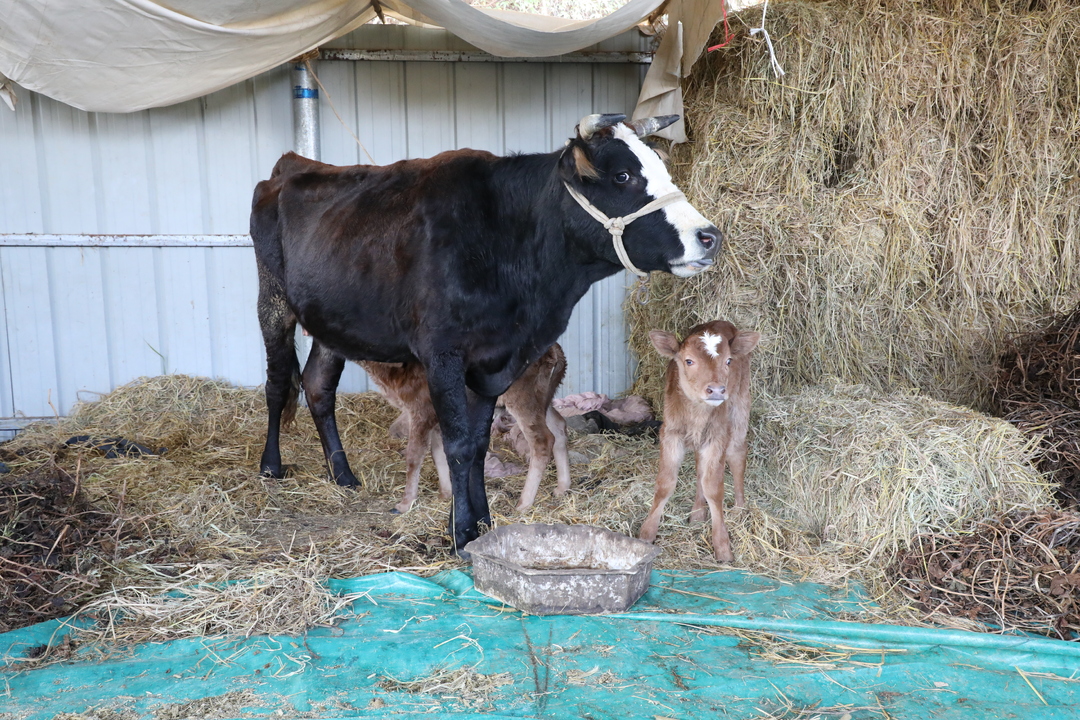 12月13日晚,这头母牛顺利产下第一头小牛。正当人们以为生产结束时,次日清晨,它又给了大家一个巨大的惊喜——第二头小牛诞生了!