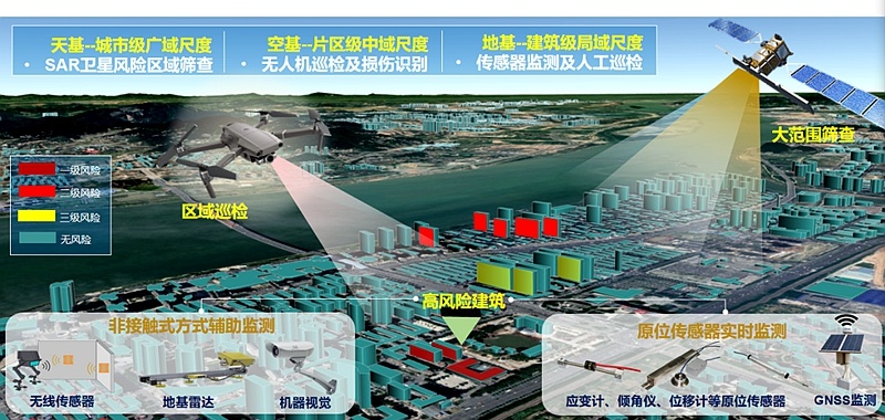 北斗形变监测系统可对既有房屋结构安全发挥着关键作用。北斗监测技术,结合人工智能技术和卫星遥感、无人机巡检、物联感知设备等“天-空-地”一体化、轻量化监测预报预警技术,将实现房屋变形、开裂、外墙脱落等安全隐患的实时监测和预警,筑牢房屋安全防线。
