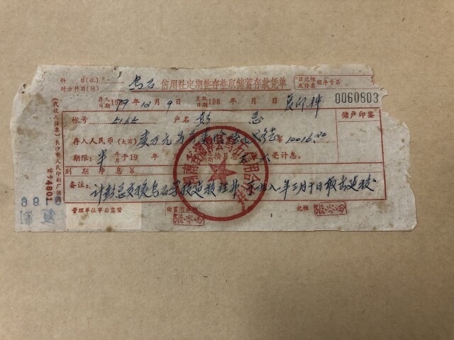 说起彭总的这张存单,当时乌石信用社在任的老刘主任一脸欣喜。“那是1979年的冬天,一大清早,浦安修同志打算回北京的前夕,派人过来通知我们要存一万块钱的定期。”年逾八旬的刘老陷入了深情的回忆中,接到这个消息后,他当即派了一名信用社会计带着空白存单和印章过去。收到10016.2元现金后,会计当场开了张存单给浦安修同志。彭总的存单就这样保存下来,成为了一份珍贵的记忆。