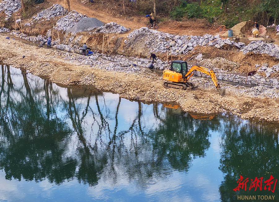 12月17日,蓝山县土市镇埠头村,工人在正抢抓枯水期,在钟水河畔进行护坡加固施工。立冬以来,该县紧盯水利建设黄金期,全力推进钟水河护坡等工程,为来年防汛抗旱和农业生产做好充分准备。 黄春涛 李梅 摄影报道(湖南图片库)