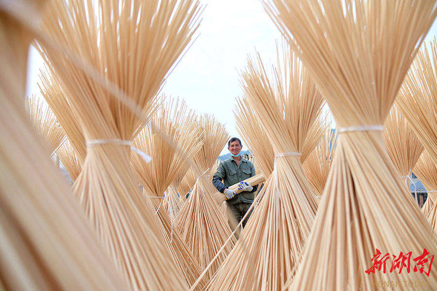 12月17日,双峰县石牛乡湖南汇元板业有限公司,工人在晾晒竹筷半成品。作为全省竹产业重点县,该县拥有34家竹加工企业,年产值达12亿元,可带动竹农人均增收2000元,“以竹代塑”产业成为乡村振兴新引擎。 谢群杰 李建新 摄影报道(湖南图片库)