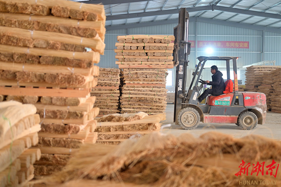 12月17日,双峰县石牛乡湖南汇元板业有限公司,工人使用叉车搬运竹制品。作为全省竹产业重点县,该县拥有34家竹加工企业,年产值达12亿元,可带动竹农人均增收2000元,“以竹代塑”产业成为乡村振兴新引擎。 谢群杰 李建新 摄影报道(湖南图片库)