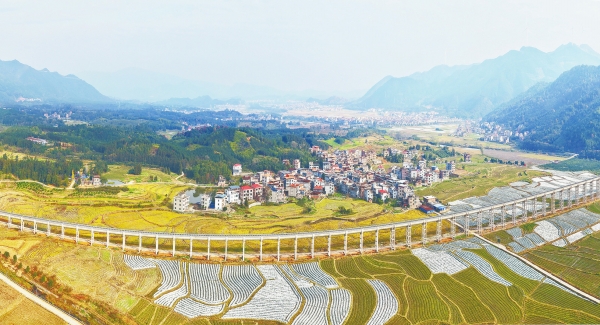 12月17日,蓝山县毛俊镇,乡村田园与水渠、青山相互映衬。 近年来,该县践行“绿水青山就是金山银山”理念,通过人居环境整治和特色农业发展,实现田园、水渠与青山和谐相融,呈现宜居宜业的乡村振兴图景。