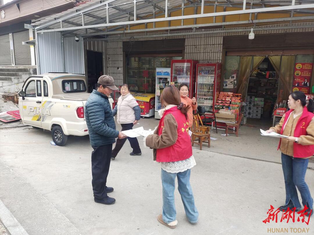 新湖南客户端12月18日讯(通讯员 鄢诗洁)为持续深化“扫黄打非”工作成效,切实打通基层宣传“最后一公里”,提升村民对扫黄打非工作的知晓率与参与度,近日,岳阳市君山区许市镇柿树岭村“两委”联合村新时代文明实践站志愿者组建宣传小分队,以“分片包干、逐户走访”的方式开展“扫黄打非”入户宣传活动,让文明新风走进千家万户。