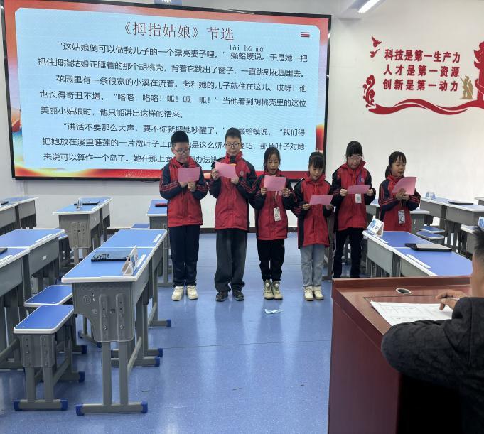 此外,3-6年级的选手们现场随机抽取推荐书目片段,进行合作朗读表演。中年级选手的朗读活泼灵动,字里行间满是童真童趣;高年级选手则以沉稳语调、饱满情感,深刻诠释文字背后的温度与力量。他们字正腔圆、声情并茂,用琅琅书声传递文字魅力,精彩表现赢得评委老师的一致点赞!