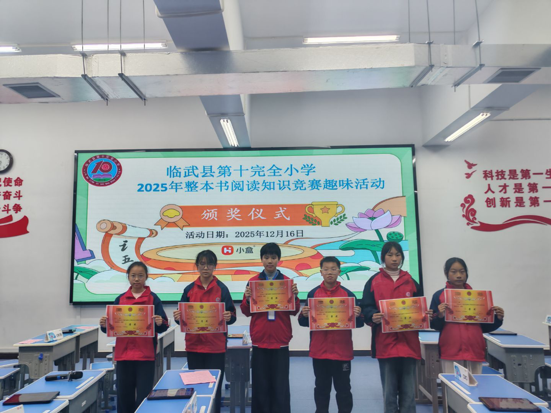 以赛促读,以读促学!此次整本书阅读知识竞赛,将阅读积累与趣味竞技巧妙融合,既检验了学生的阅读成效,更搭建了交流展示的平台。临武县十完小将以此次活动为契机,继续深耕阅读教育,让书香浸润校园的每个角落,助力学生养成终身阅读的良好习惯,在墨香文韵的滋养中茁壮成长、全面发展。