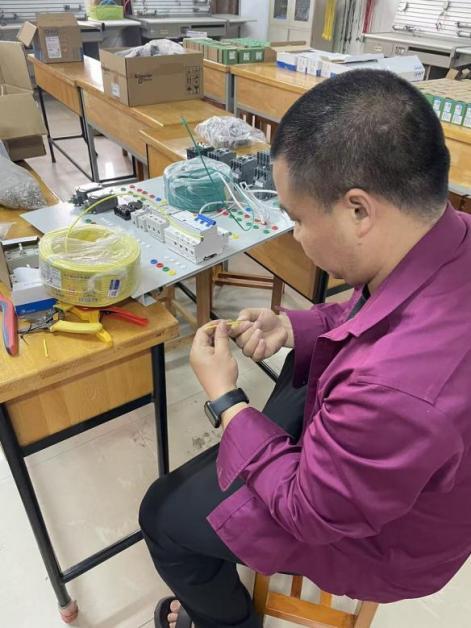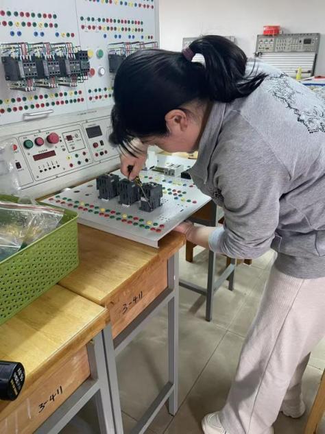李艳玲老师负责的维修电工实训台升级项目成为生动范例。2011年购置的老旧设备,通过教师设计、学生参与、材料外购与外协加工相结合的模式,单套改造成本仅需1.5万元,较整体外包节约25%。这一模式让旧设备“起死回生”,实现了实训资源的绿色循环。通过本次改造,近2500名机电专业学生用上焕新设备,实训开出率与教学质量双提升,学生动手能力显著增强;教师在项目中深化技术理解,工程实践与研发能力跃升,反哺课堂教学更接地气;在满足甚至超越教学需求的同时,实现经费集约高效利用,破解设备更新资金困局。