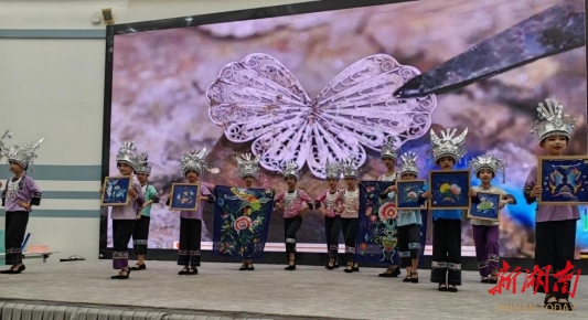 这份对本土文化的自信,随着苗画社团的孩子们走出校园,登上湖南省科技馆的舞台。身着苗族盛装的他们,自信地向观众细致介绍针法的精巧、纹样的寓意、色彩的讲究,将课堂所学的民族艺术,化作落落大方的展示与讲解。