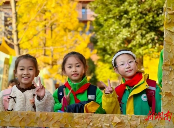 银杏走廊是创意展示区,树下成为大地艺术区,落叶铺就的甬道变身“金色T台”。孩子们用落叶拼贴服装,用银杏果制作黏土手作,为作品配写小诗散文;科学课上观察的叶脉,此刻成了拓印创作的素材;劳动课上收集整理的落叶,在美术课上焕发新生。