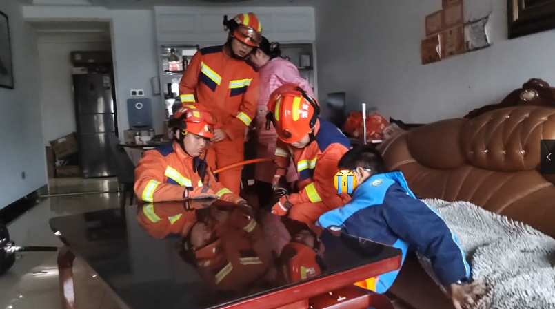 男孩被卡现场。图源:湖南消防“切断算了!”