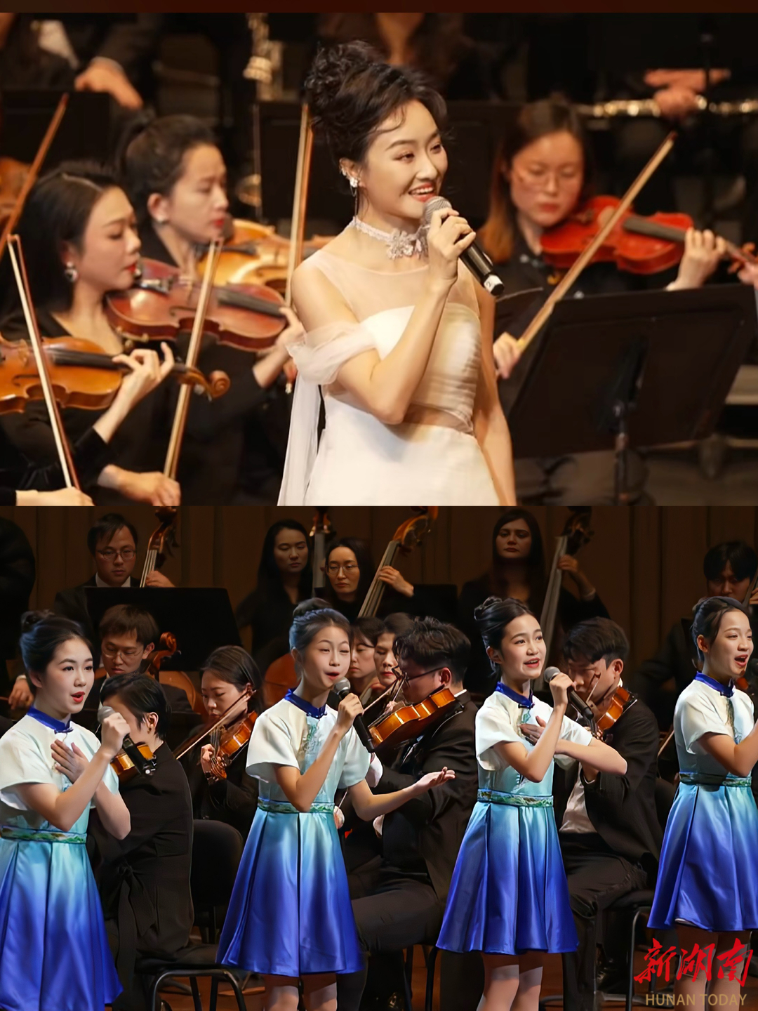 音乐会以五个篇章系统铺展长沙原创音乐的丰硕成果,从山水情怀到城市温度,从湖湘风情到家国大爱,再到未来展望,层层递进间勾勒出长沙原创音乐的精神图谱。《山水谣》篇章中,《词里潇湘》的婉转、《湘水谣》的灵动、《大泽湖之恋》的深情次第流淌,刚斩获中国音乐金钟奖的歌唱家郁留成演唱的《放歌岳麓山》,更给“半部近代史”的岳麓山赋予了金色回响。